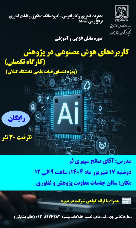 کارگاه آموزشی "هوش مصنوعی نوین، از هیجان تا کاربرد واقعی" ویژه دانشجویان دانشکده ادبیات و علوم انسانی (گروه ایرانشناسی) روز 6 دی ماه ساعت 9 الی 12:30 در سالن جلسات مرکز نوآوری دانشگاه برگزار گردید.