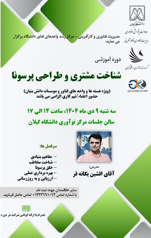 25 آذرماه ساعت 14 الی 17 سالن جلسات مرکز نوآوری دانشگاه