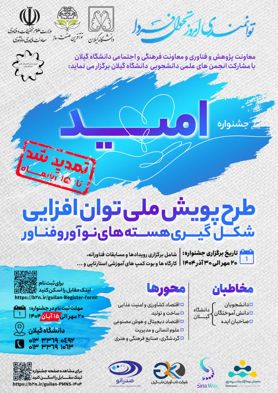 تمدید زمان ثبت نام در جشنواره امید تا تاریخ 15 آبان ماه 1404
