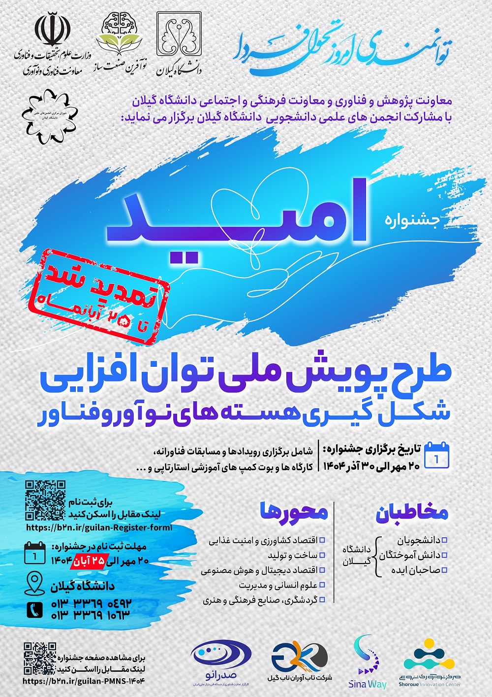 تمدید زمان ثبت نام در جشنواره امید تا تاریخ 25 آبان ماه 1404