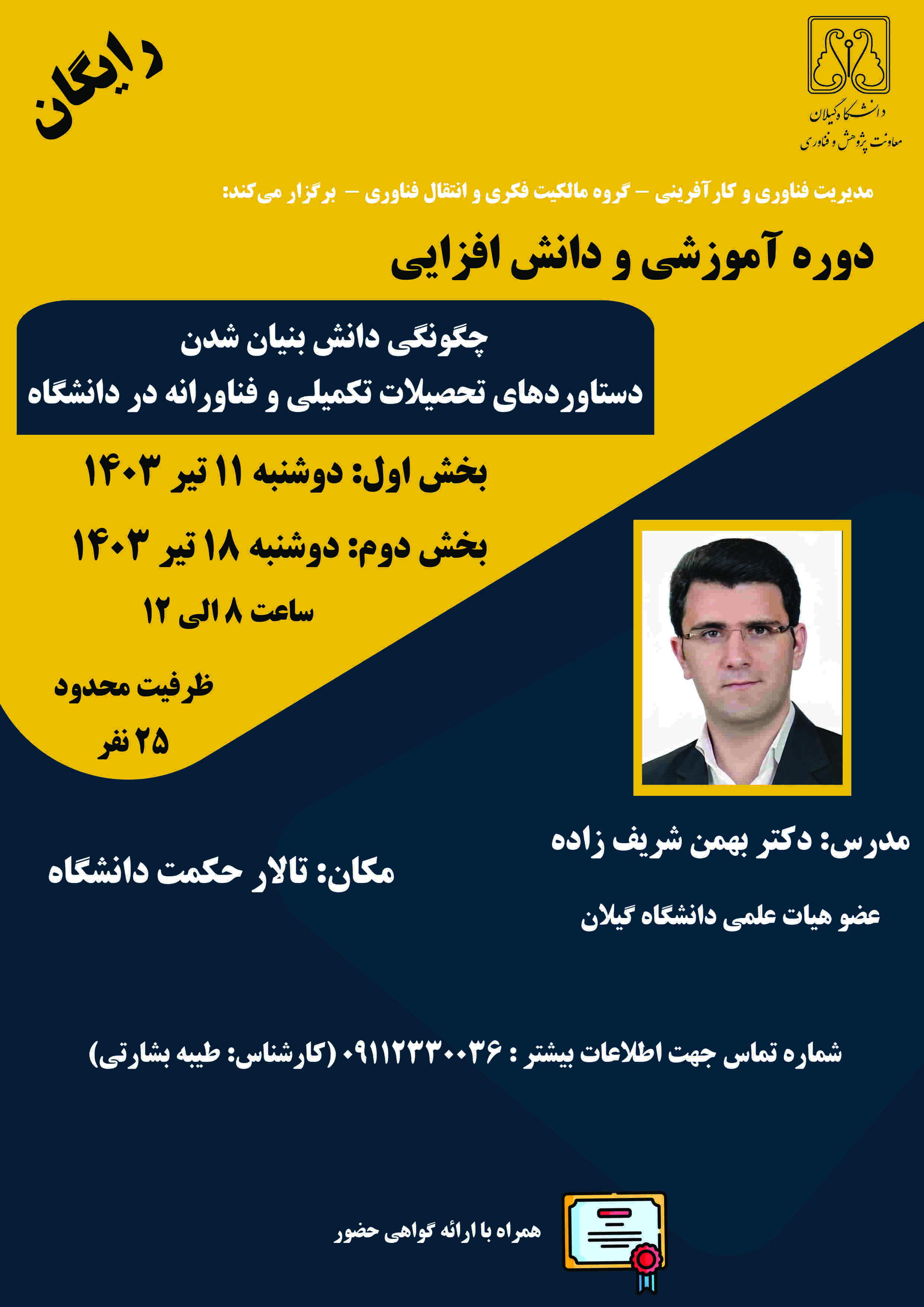 برگزاری دوره دانش افزايي و آموزشي " چگونه دستاوردهاي تحصيلات تکميلي و فناورانه در دانشگاه دانش بنيان شوند؟"