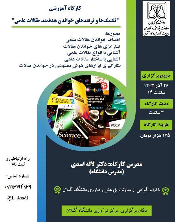 برگزاری کارگاه آموزشی "تکنیک ها و ترفندهای خواندن هدفمند مقالات علمی"
