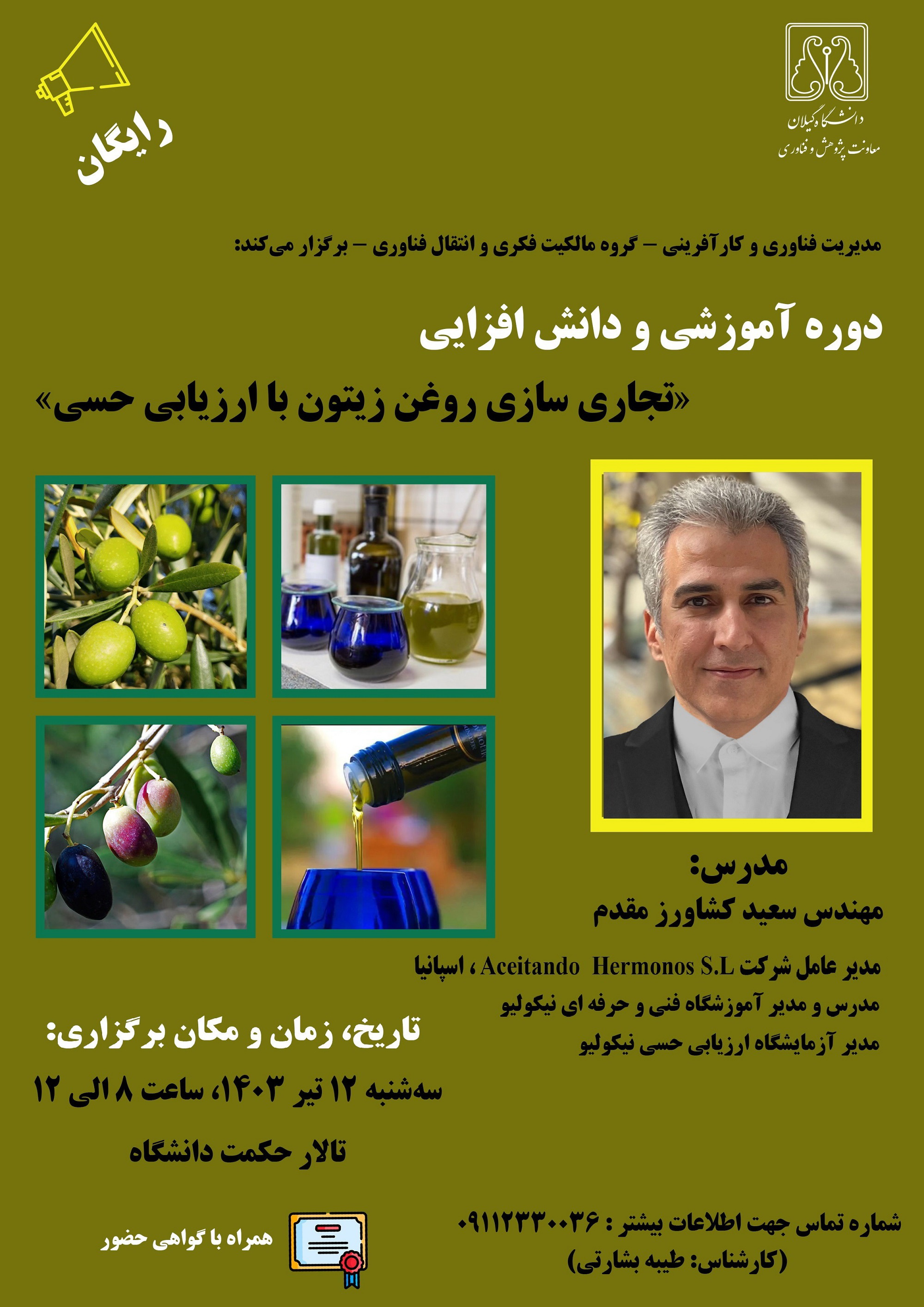 برگزاری دوره دانش افزايي و آموزشي "تجاري سازي روغن زيتون با ارزيابي حسي"