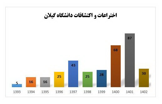 آمار اختراعات و اکتشافات دانشگاه گیلان در بازه زمانی سال های (1402-1393)